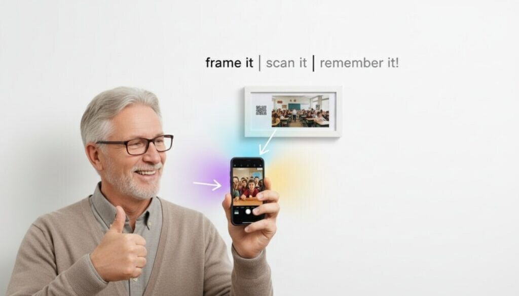 Sinnvolle Geschenke für Lehrer entstehen dort, wo echte Erinnerungen lebendig werden. Ob als Geschenk für eine Lehrerin in der Grundschule, als Abschiedsgeschenk der 10. Klasse oder als personalisiertes Geburtstagsgeschenk – der QR Frame von QR Framery verwandelt ein einfaches Foto in ein unvergessliches Erlebnis.